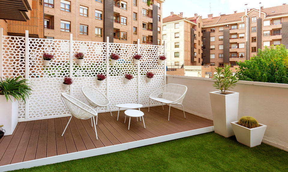 Nos adaptamos a las necesidades en cada momento, desde colocar tarima, césped artificial, jardineras, celosías, etc., hasta el diseño total de la terraza, atendiendo las prioridades. Aplicamos nuestra experiencia para conseguir el lugar más agradable y natural en el que disfrutar de un espacio personal y único.